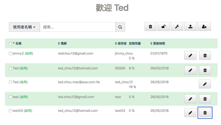 1. Click on the Trash Bin icon for the specific user on the page