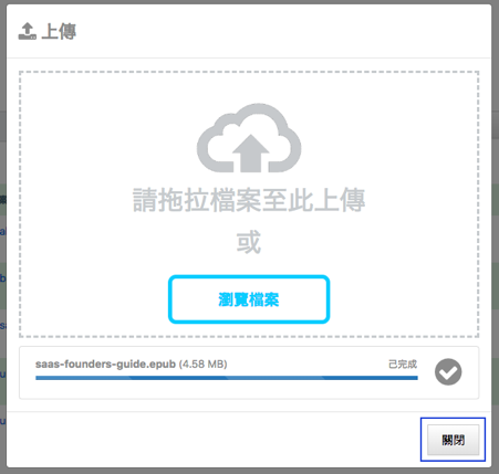 4. Click on the Close button or press the "Esc" key to close the upload dialog