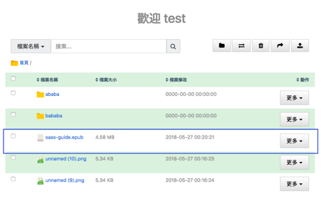 1. Click on the "more" button for the specific file on the page
